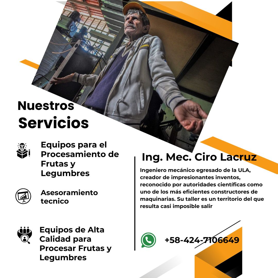 Equipos procesar frutas legumbre : Innovación, Eficiencia y Sostenibilidad en la Industria Alimentaria en Mérida, Venezuela,para un futuro más saludable. Ing Ciro La Cruz. Merida. Venezuela
